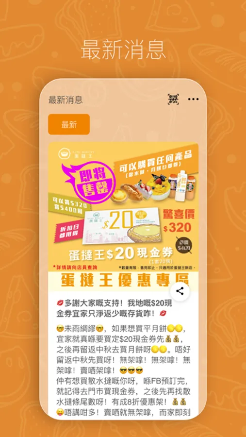 * 最新消息:為您提供各項資訊及推廣,隨時隨地收到各種精彩驚喜、限時優惠。