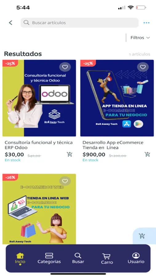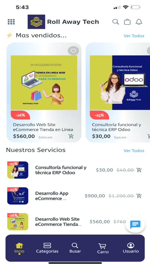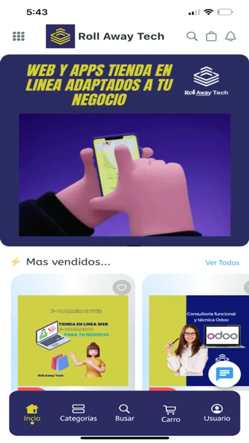 Roll Away Solutions pone a disposición de sus clientes su App eCommerce para ofrecer un catalogo y tienda en linea de sus servicios y asi sus clientes puedan tener información actualizada, de primera mano y puedan hacer sus consultas y pedidos a traves de esta App..