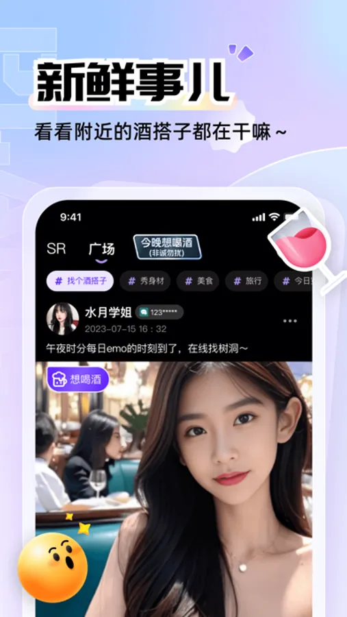 3、【SR】真人认证,拒绝“照片”,为你提供精选高颜值酒搭子。