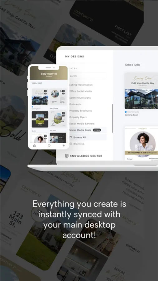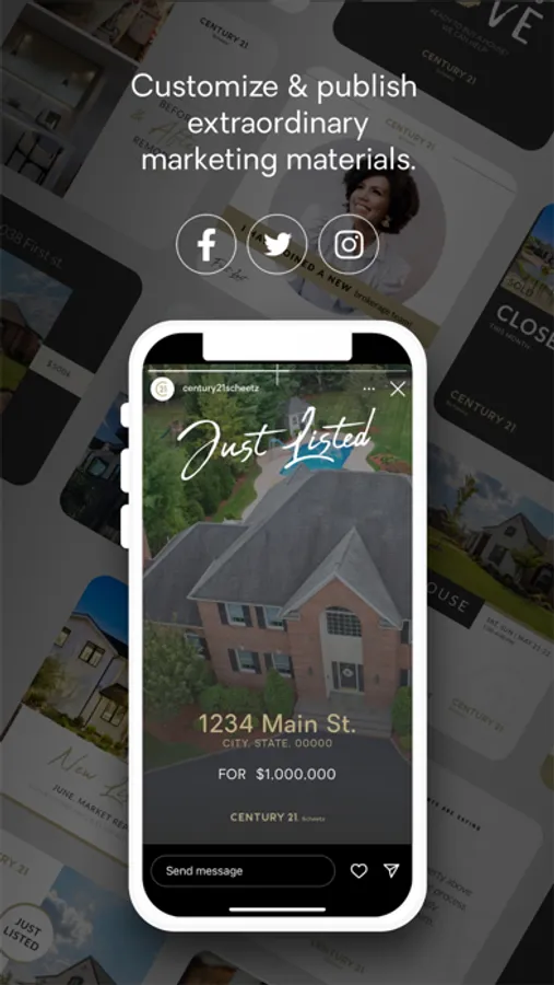 We provide the best, most head turning social media marketing templates for your personal brand. At the same time, our mobile design app gives you more. More options. More ways to make your marketing modern and remarkable. All while giving you simple and full control over how you create and represent your brand. Easily create social media posts, co-brand, and build company brand awareness through your personal social media channels.