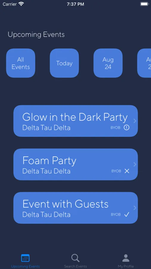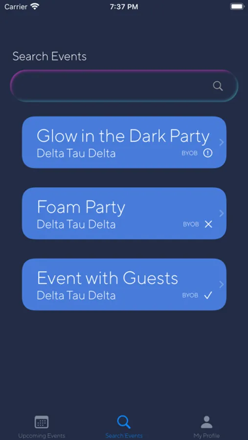 FratPak is an app primarily targeted towards college fraternities and sororities with an intention of making their event planning significantly easier. Gone are the days of making events in group chats, and getting invites out one by one, and now, event invites are easy to create and even easier to distribute. Users can check into events using QR codes, managing their data securely and privately, and have easy access to information on specific event staff and sober staff if necessary for their own or other's safety while at an event.