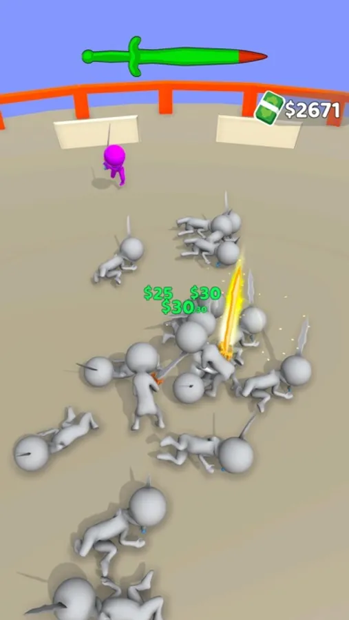 Defeat your enemys with it and earn more money to upgrade your sword and strenght!