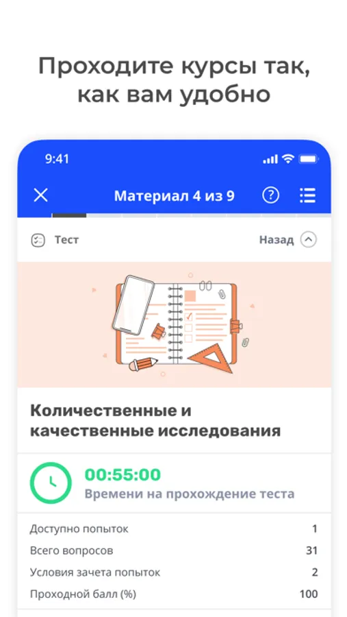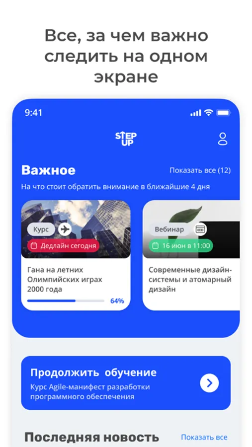 Приложение StepUp — удобный доступ к назначенным дистанционным курсам и проверочным тестам. В нём вы найдёте: