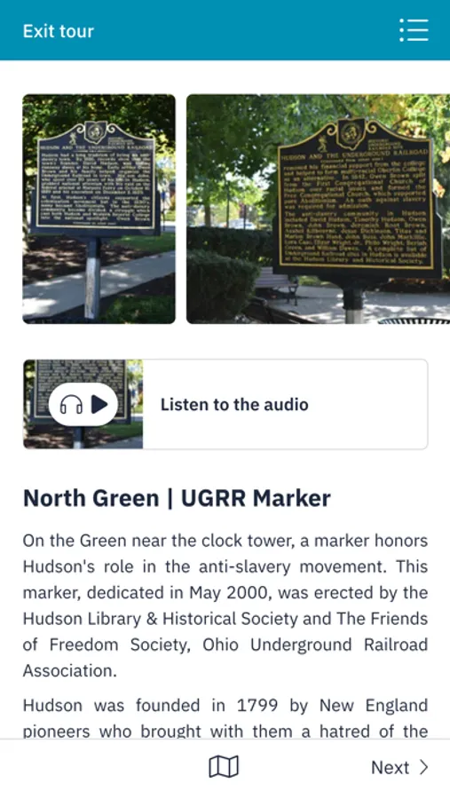 History comes alive with the Hudson Library & Historical Society’s mobile walking tours of historic Hudson, Ohio. These immersive tours highlight the people, places and events shaping Hudson’s history. Each self-guided tour incorporates the carefully researched content from the library’s popular in-person walking tours enhanced with rich multimedia. Tours feature audio narration and/or written descriptions at each stop highlighted with digitized historic photographs and manuscripts from the library’s archives.