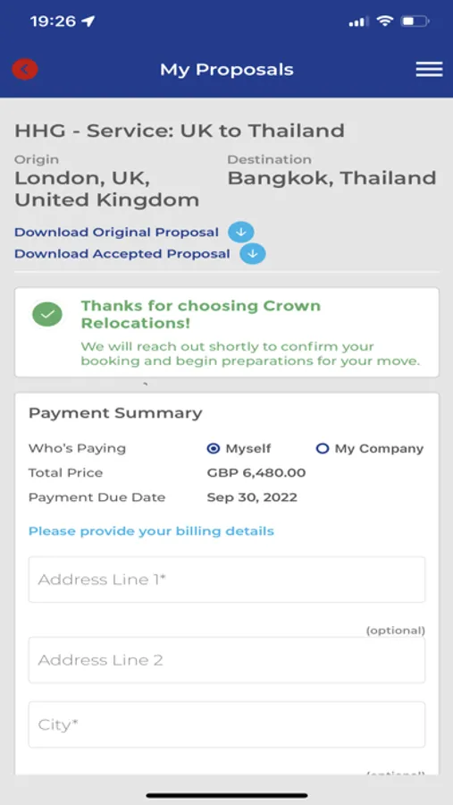 My Proposal - easy to review and accept/decline the proposal and make payment online.
