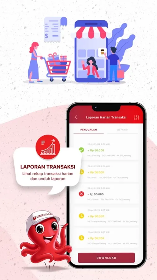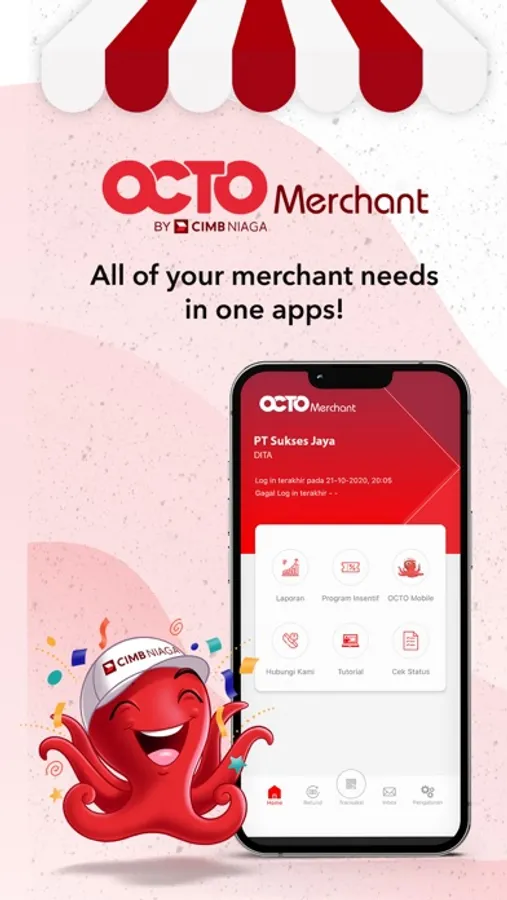 OCTO Merchant is a mobile application from CIMB Niaga, which is here to facilitate CIMB Niaga's business partners in developing their business. OCTO Merchant helps all CIMB Niaga business partners to develop in managing their business anytime and anywhere.