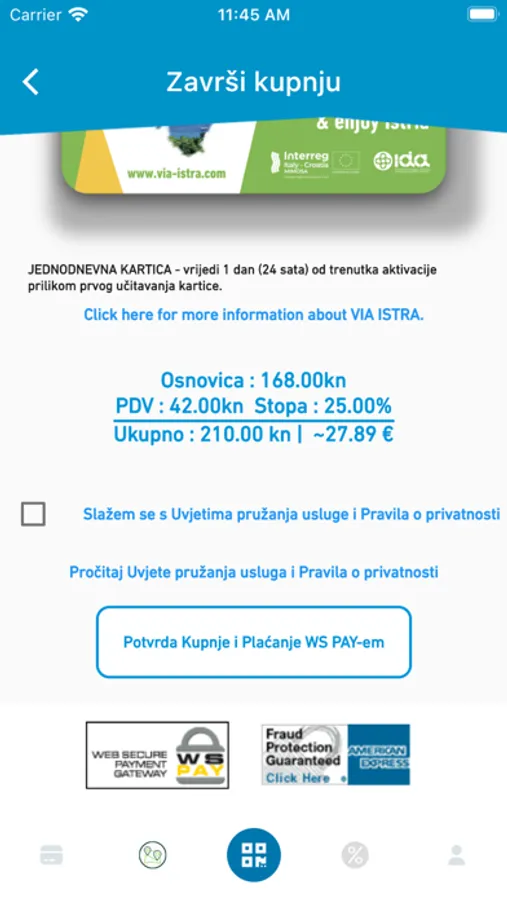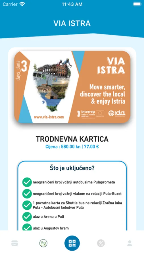 VIA ISTRA application is used to purchase a tourist card that the user can use when visiting the County of Istria (Croatia).