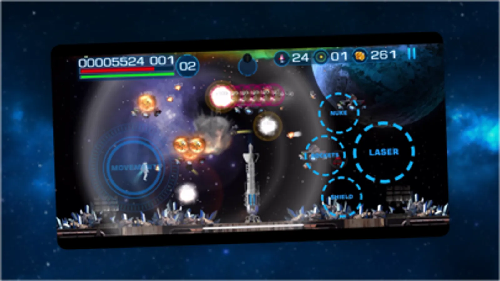 The goal of the game is to collect golden colored crates which drop from the sky, containing rocket ship parts. When your player touches a golden crate, a tractor beam will attach and it will follow the player. Move it through the blue beam on the launch pad to deliver it. A piece of the ship will then be built. Before the ship takes off, a number of Luna Engineers will try and board and you need to protect them from the enemy. The ship will then take off and the level completes.