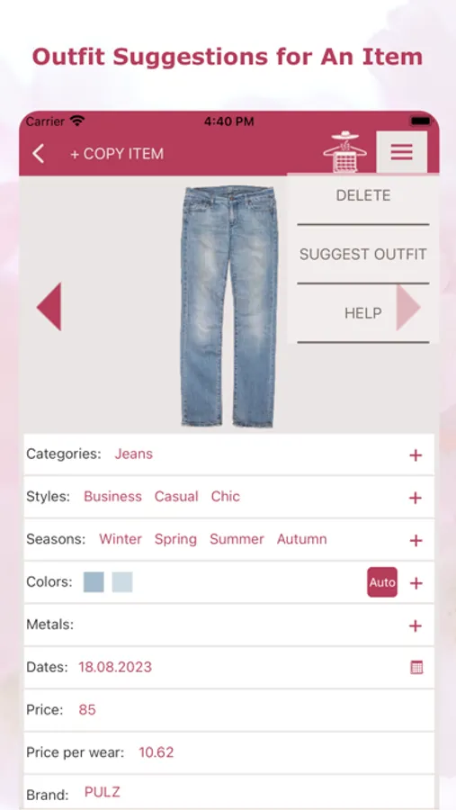 Cost per wear in Items allows you to track how much value you are getting out of your purchases.