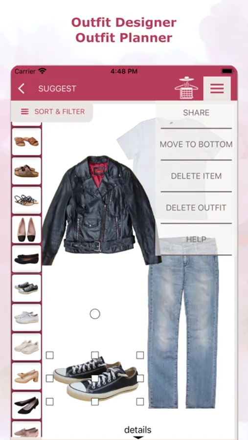The purpose of this app is to help you get most of your closet with as little time and money investment as possible, while having fun. Enjoy it!