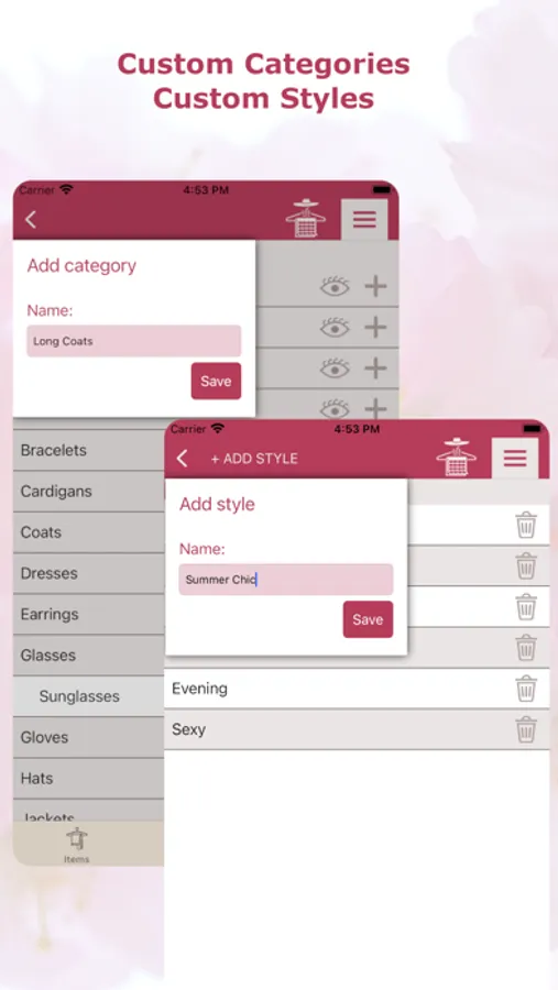 You can add as many custom sub-categories for Items as you wish. Styles are completely customizable.