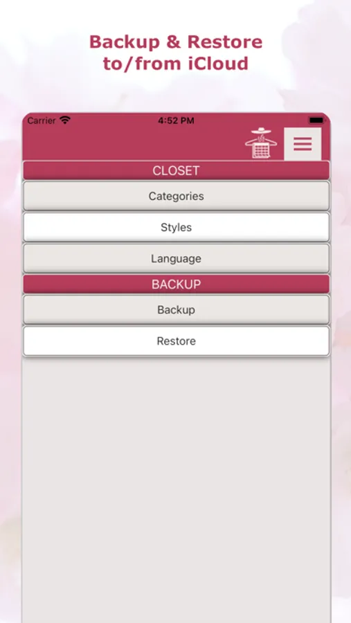 The backup functionality guarantees you will never lose your digital closet, even if you change your device.