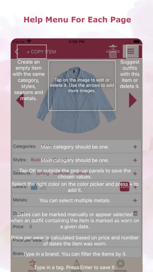 The tags feature allows you to add special data for each Item, which enables easy sort and filter of your wardrobe.
