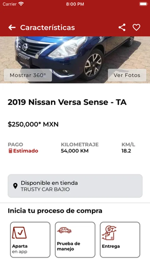• Observar el auto en 360° (tanto en su exterior como interior)