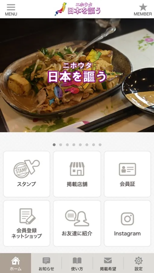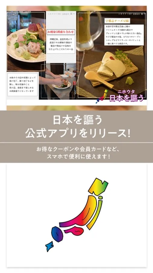 【ニホウタ-日本を謳う-】の掲載店舗でお得なサービスが受けられる会員専用のアプリ。