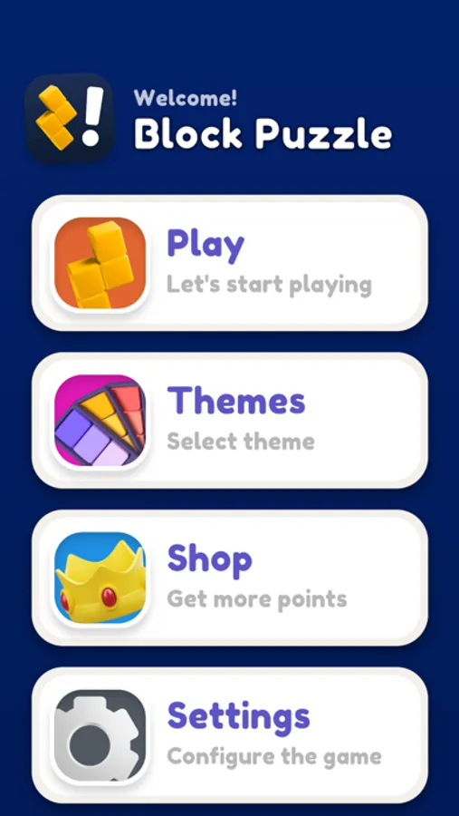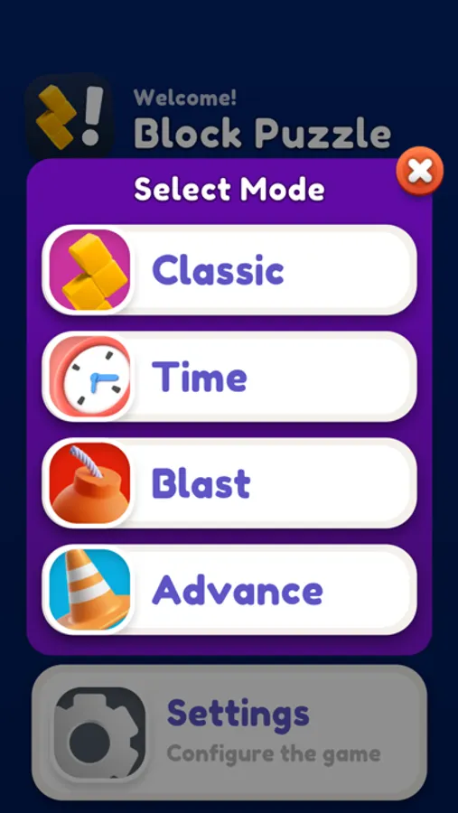Block games includes 4 different modes: Classic, Time, Blast and Advanced. Block puzzle games is the best way to train your mind and have a good time training your brain.