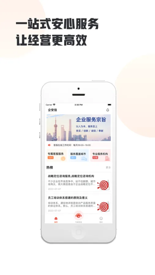 企安信依托于互联网为用户搭建一座沟通桥梁,利用大数据及智能算法推荐相关信息、精准对接服务。企安信是一款综合服务平台,一站式安心服务让经营更高效。为企业提供更加精准 及时 优质的服务。