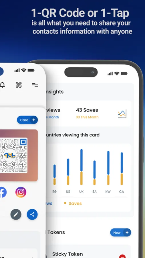 1-QR Code or 1-Tap is all what you need to share your contacts information with anyone.