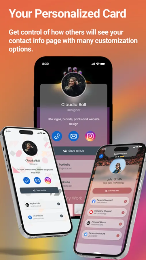 Personalized Profile Page: Get control of how others will see your contact info page with many customization options. Customize colors, cover photo, and much more. Add your photo for more personalization and even control the order of the contact info on the page.