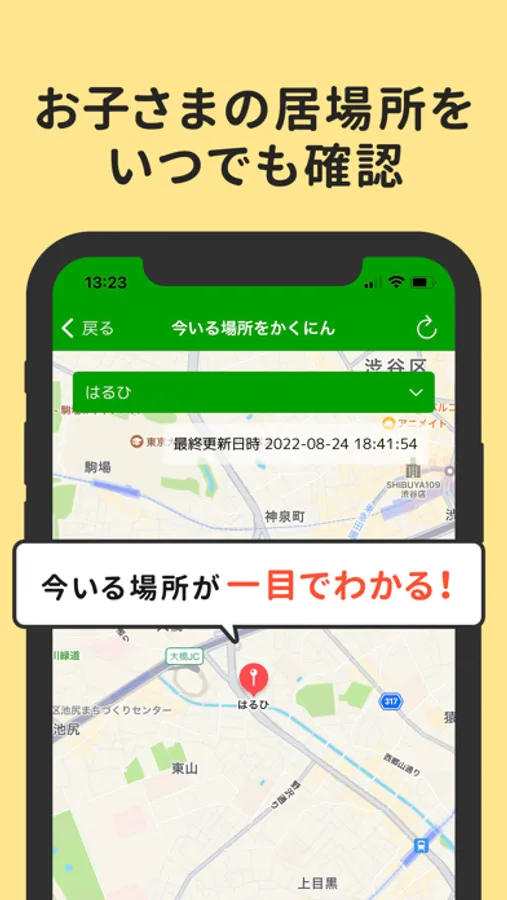 アプリを起動中であれば、いつでもお子さまの居場所を確認することができます。