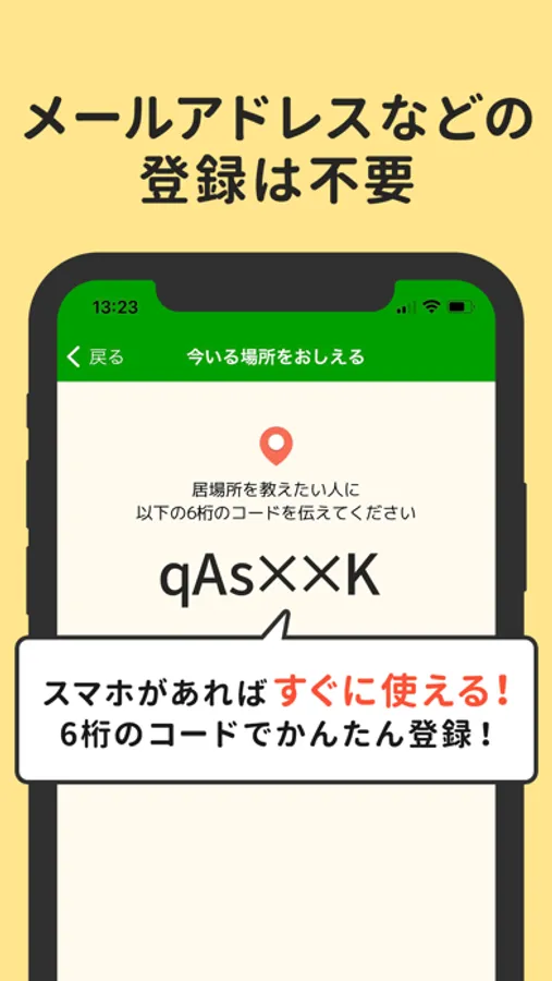 お子さまのスマホに表示されたコードを、パパママのスマホに登録するだけ。