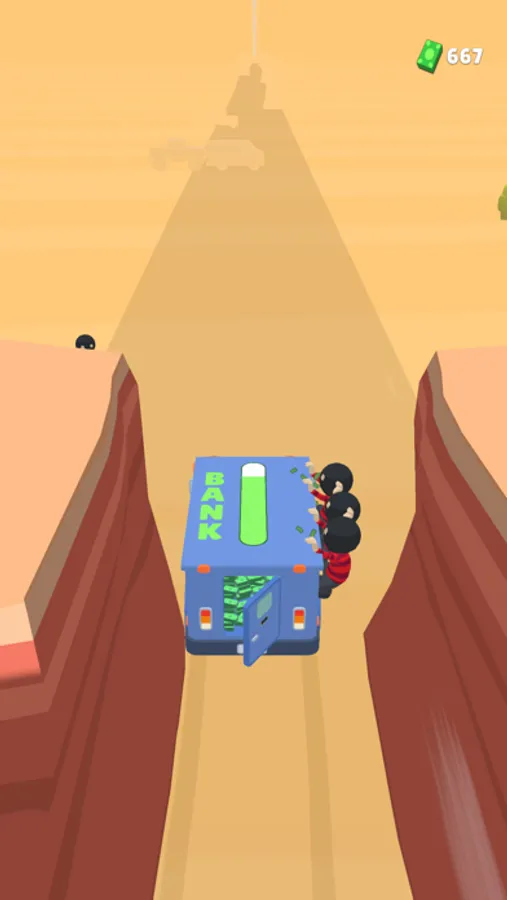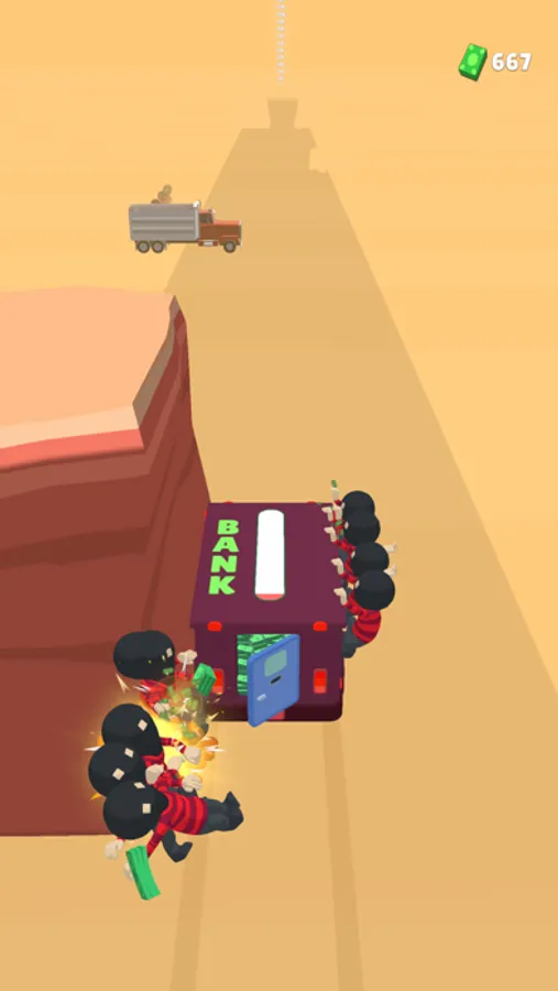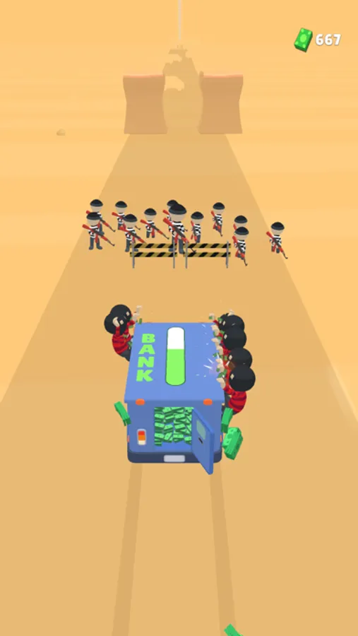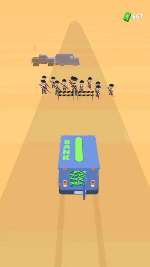 Get the bank car to the finish by protecting it from the bandits.