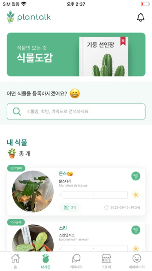 - 다양한 식물을 검색해 볼까요? 등록도 할 수 있어요!