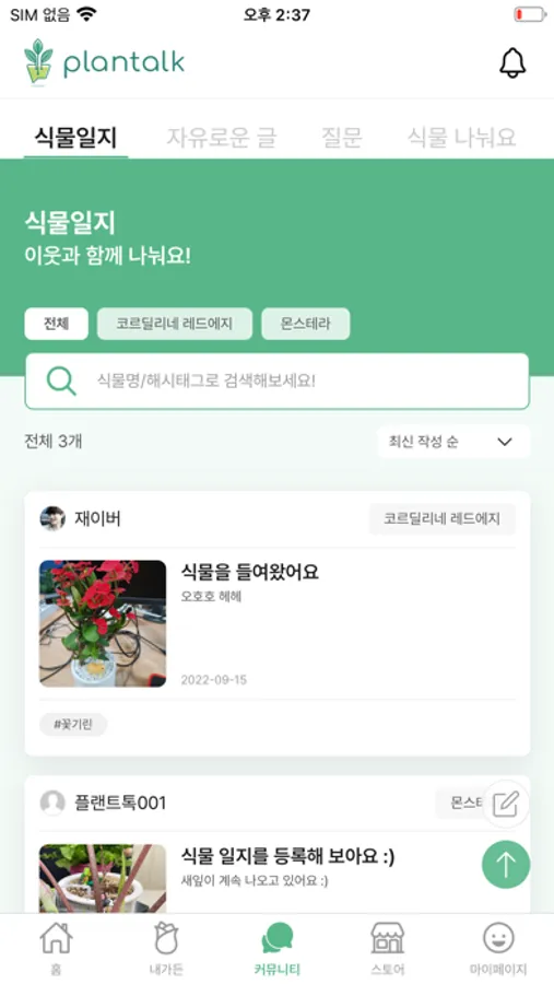 - 일지로 등록한 나의 초록이의 상태를 다른 사람들에게 공유하고 대화를 나눠보세요.