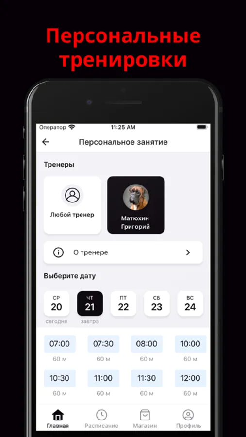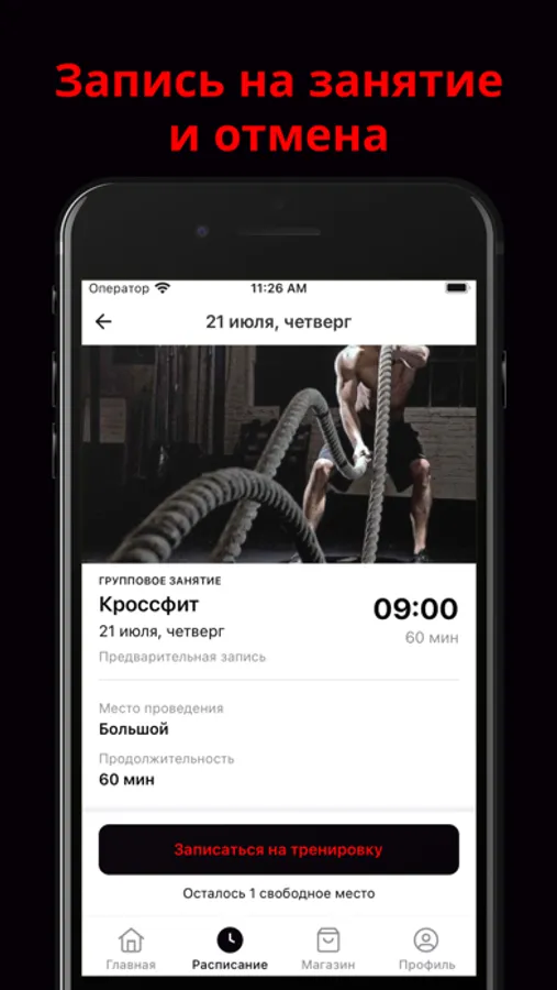 В приложении вы можете записаться на тренировку, выбрать удобное время занятий, отслеживать остаток занятий по абонементу.