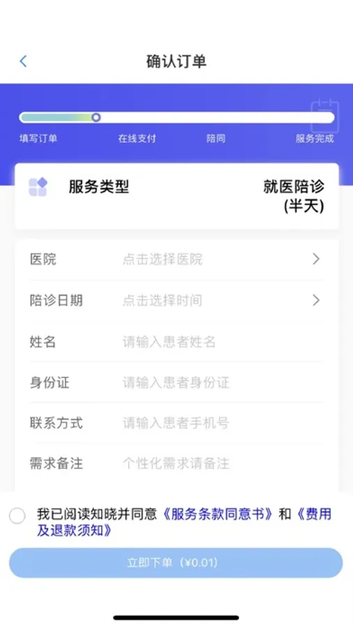 【服务内容】在遵守医疗秩序的前提下,为客户提供诊前咨询(基础咨询、医院信息查询、官方预约渠道告知、交通查询)、诊中陪伴(车站接送、全程陪诊、医嘱记录、检查登记预约、排队缴费、窗口取药等)、诊后关怀(随访代配药、代取报告、复印病史、服务随访)等一站式全流程代办服务,让就诊变得省心省力。