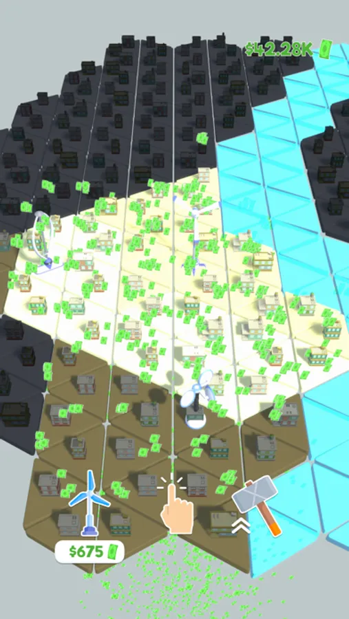 Place the wind turbines to the areas suitable for your taste, and make sure to tap constantly to make them work at their best! Make sure to cover the whole area for a full green power!
