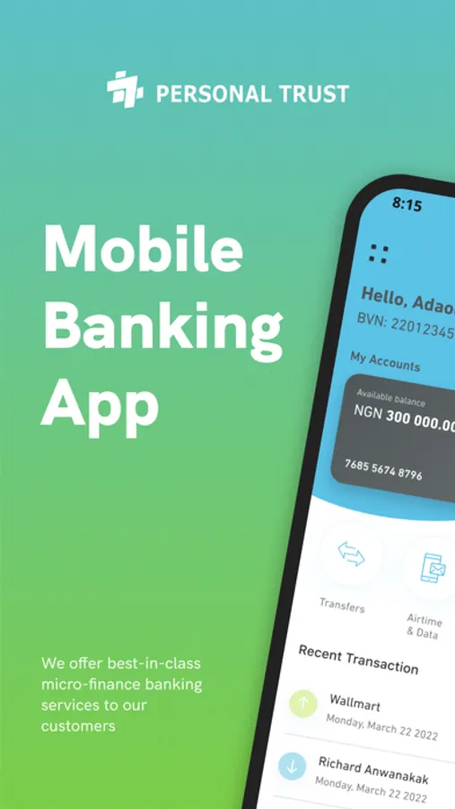 Personal Trust Mobile Banking App is an exciting app for banking transactions on the go. It is your “BANK in your Pocket” and gives you access to perform transactions directly from your phone, tablet or mobile device
