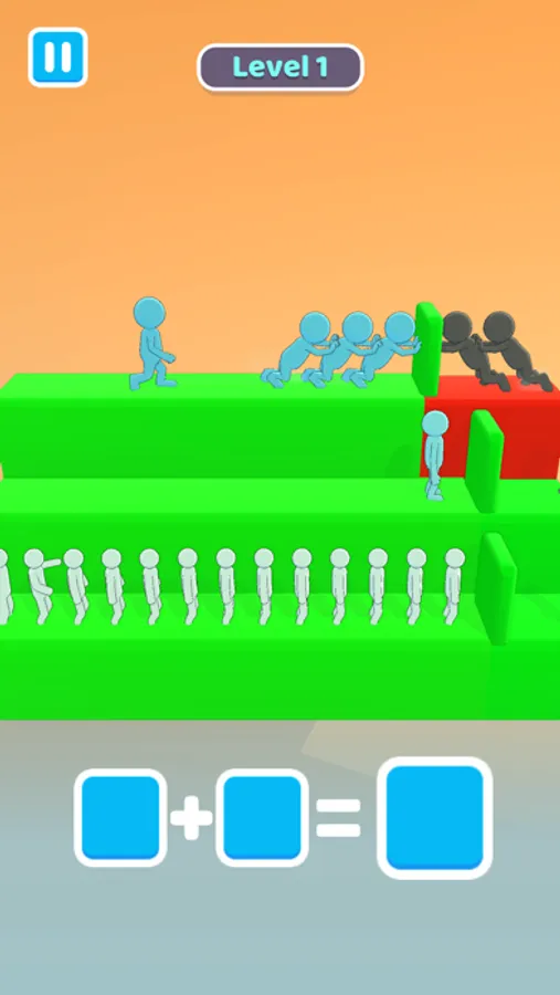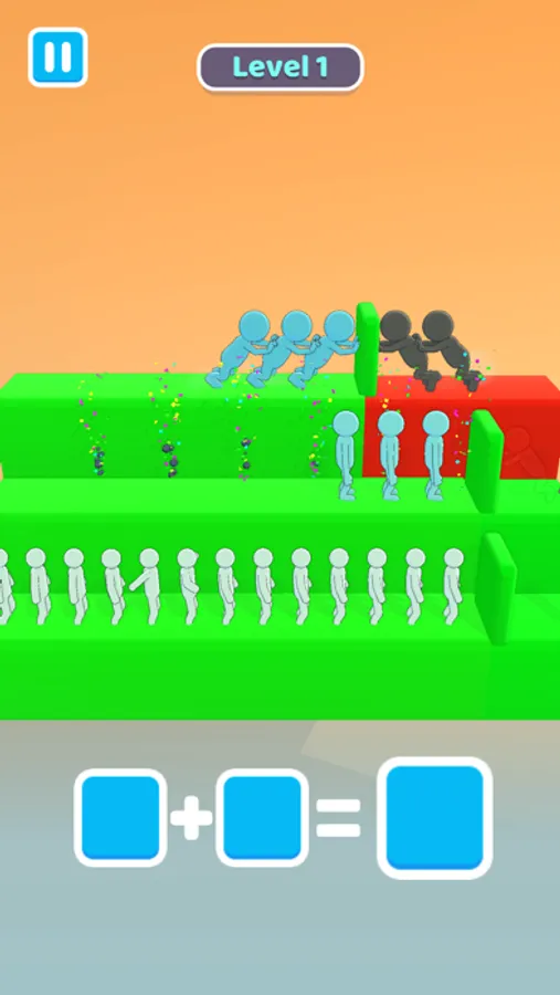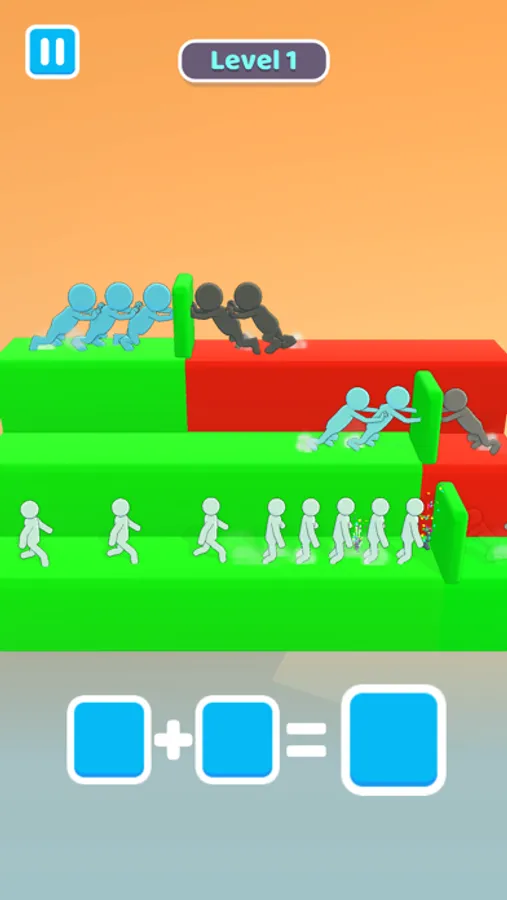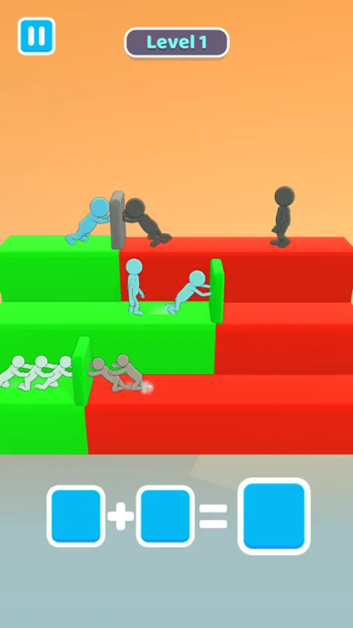 Start pushing the enemy, merge stickmen to push the enemy on the upper platform and win the game!
