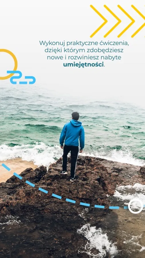 Start the expedition into yourself. To start, check your readiness for the journey and fill in the questionnaire. Think carefully about your answers - haste is not advisable ;) The questionnaire will give you an indication of your level of skills, such as relationships with others, self-confidence and self-reliance, among others. This will be the first important step you will take in your expedition. Next, you will be conquering camps. By doing a variety of exercises in different camps, you will see how to skilfully set goals, build maps of the way to conquer them, overcome obstacles without losing motivation. All this will help you get to know yourself better. During the expedition, you will meet Jasiek and Jessica who have achieved what they initially thought was impossible. The exercises will show you your strengths and talents. As you develop your skills, you will be able to go on additional expeditions. Face your difficulties and limitations and you will climb to the very top of your abilities!