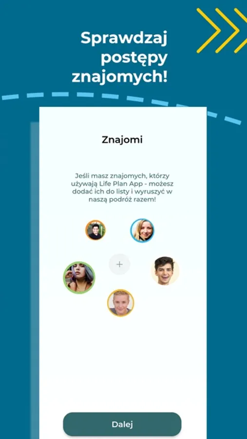 Download, register, enter your nickname and upload your image. At the beginning, you will be greeted by Marek Kaminski. In the following screens, you will learn about the functions of the application and valuable tips that will help you not only during the expedition, but also in everyday life. Your LifePlan Go expedition awaits. Ready? Let's go