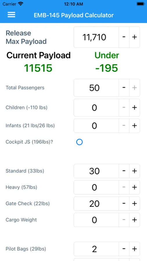 Ability to calculate how many bags and passengers you can take on an EMB-145 aircraft.