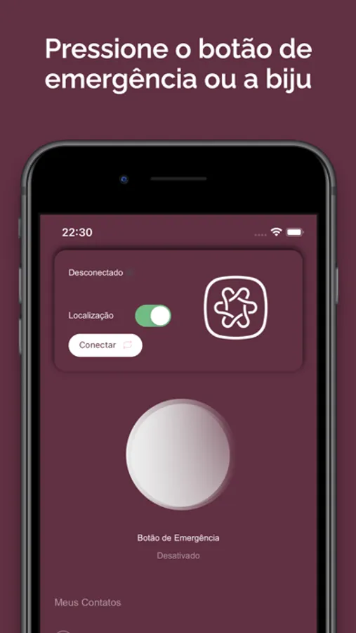 Cadastre sua rede de apoio no app e chame por ajuda apertando a Biju. Seu celular entrará em contato com sua rede enviando sua localização em tempo real.