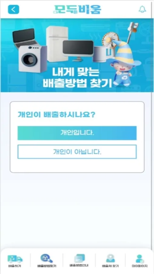 역회수, 공동주택 수거함, 지자체 대형폐기물 배출방법 등 자신에게 맞는 폐전자제품 배출방법을 알아보고 이용해보세요.