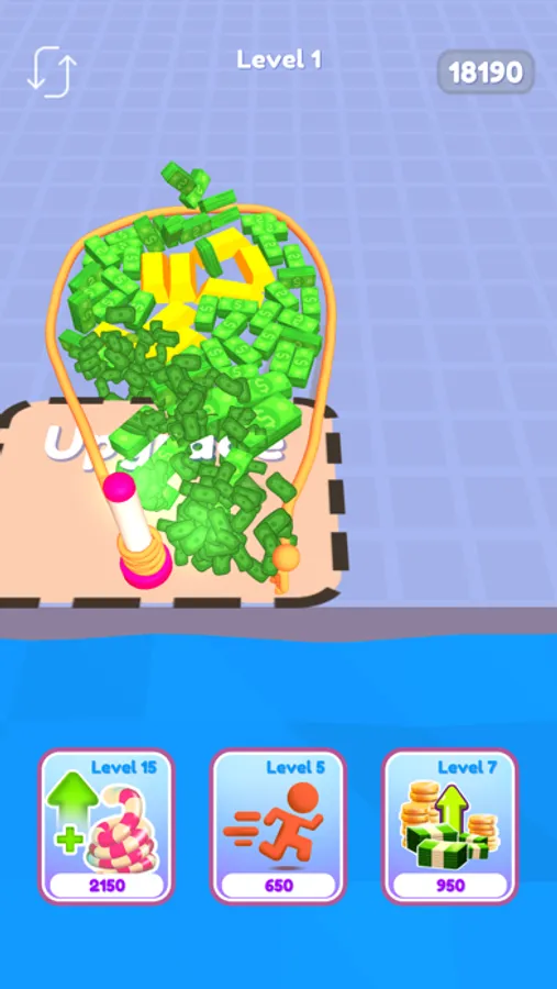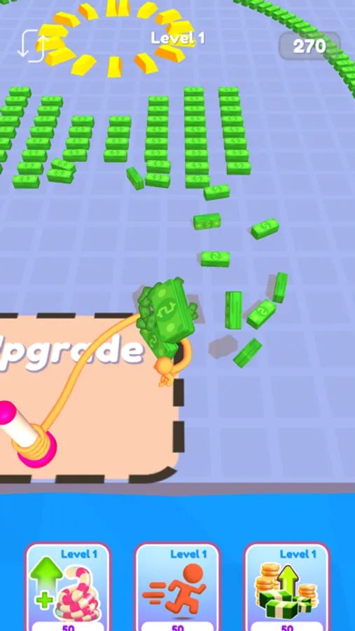 You have to get the ALL THE MONEY; however one thing is stopping you! It's the rope! You have to upgrade it to reach the money you all so want and desire!