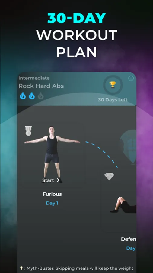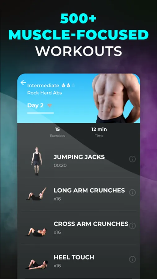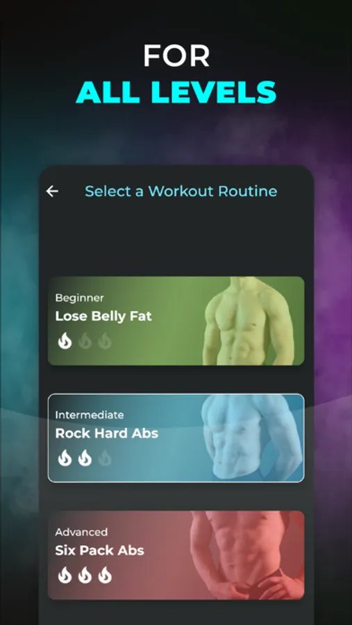 Lose Belly Fat, Rock Hard Abs, and Six Pack Abs - these 3 levels of workout plans help you lose belly fat and build abdominal muscles step by step. Whether you are a beginner or a pro, you can find workouts suitable for you. Different exercises are prepared every day to keep it fresh and exciting.