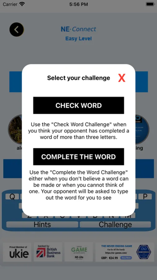 NE-Connect App is the version of this game where you play with family and friends and an online pool of players. This word game is totally different in concept from any other word game you will have ever played before and challenges the mind in a completely different way, which makes it novel and refreshing to play.