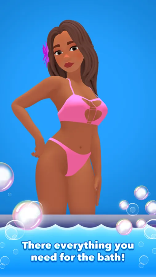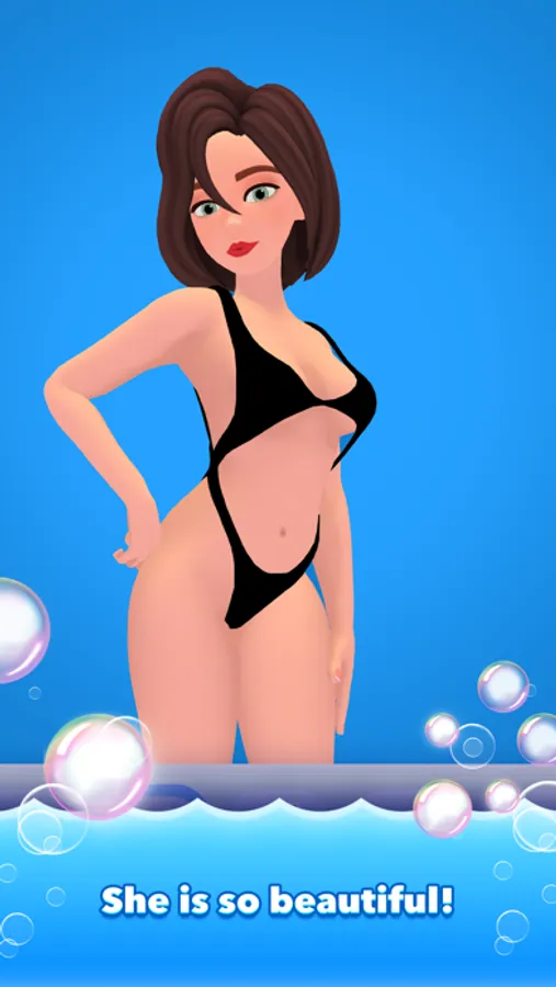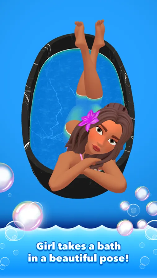 – You are not alone in the bath. Very pretty girl is taking a bath with a nice pose and watching your capturing. She is so beautiful! Bypass her arms and legs or swim under them.