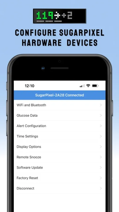 Use SugarPixel Hub to configure your SugarPixel dedicated blood glucose pixel clock for BG readings and alerts (sold separately).