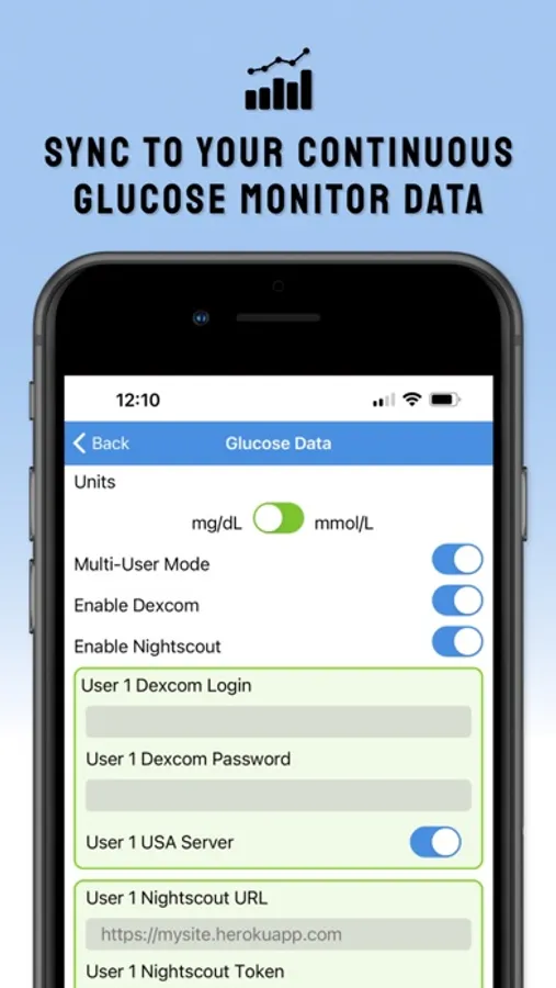 - Add blood glucose data sources for Dexcom and/or Nightscout to follow up to two continuous glucose monitors.