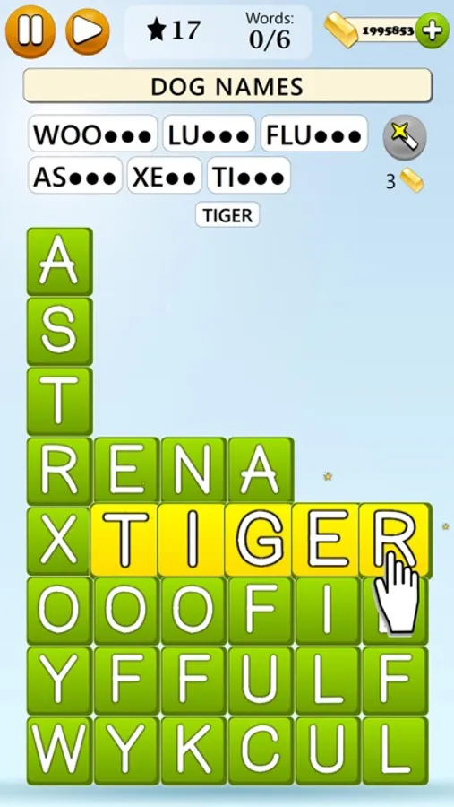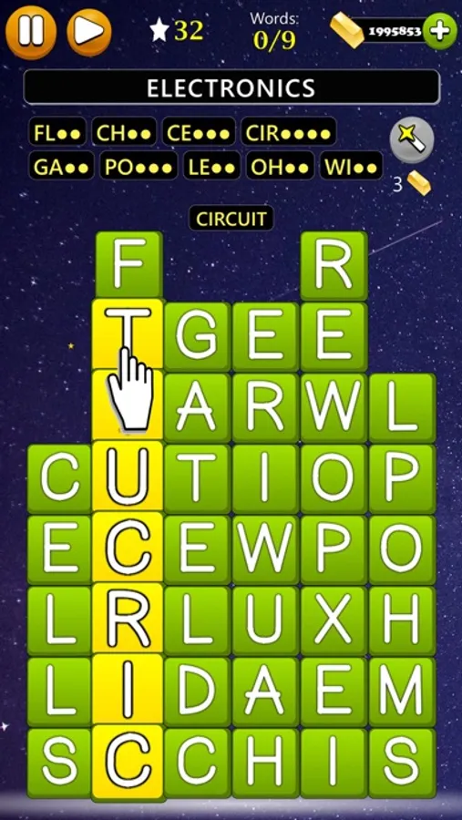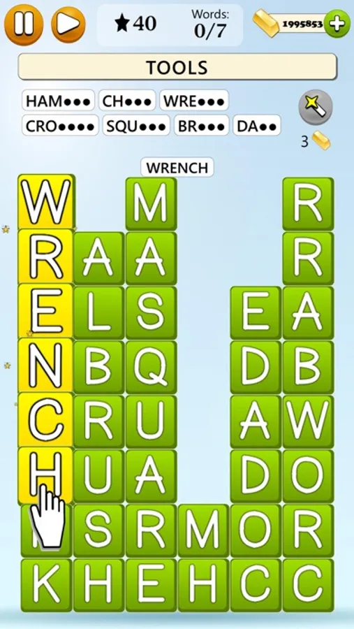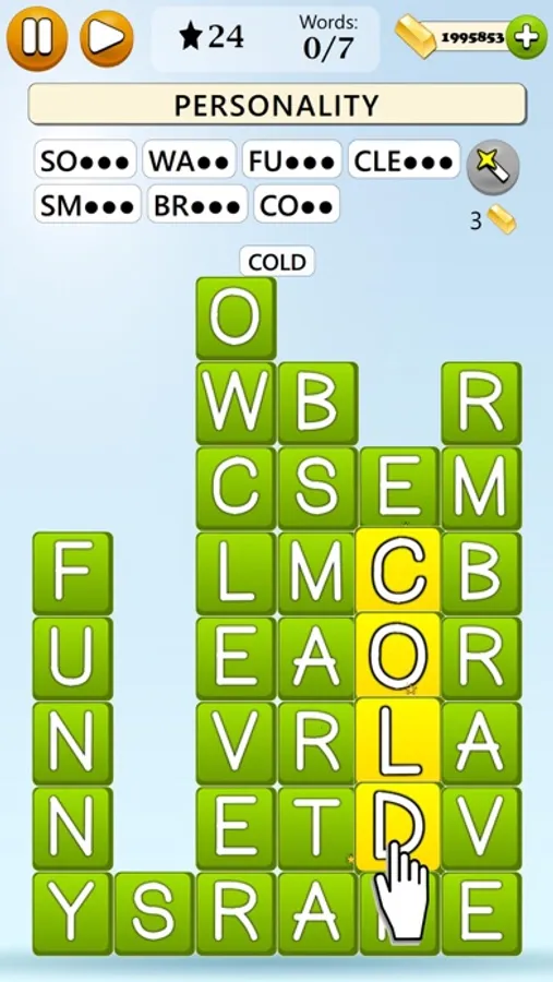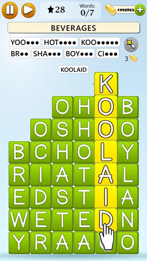 You find words and pop them with one swipe. Words are placed either vertically or horizontally. Finding words is easy when you use the hint and starting letters. When you pop all the letters you win the game. The game gets easier as you find more and more words.