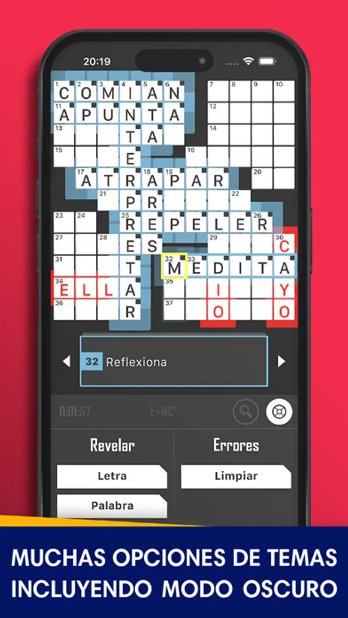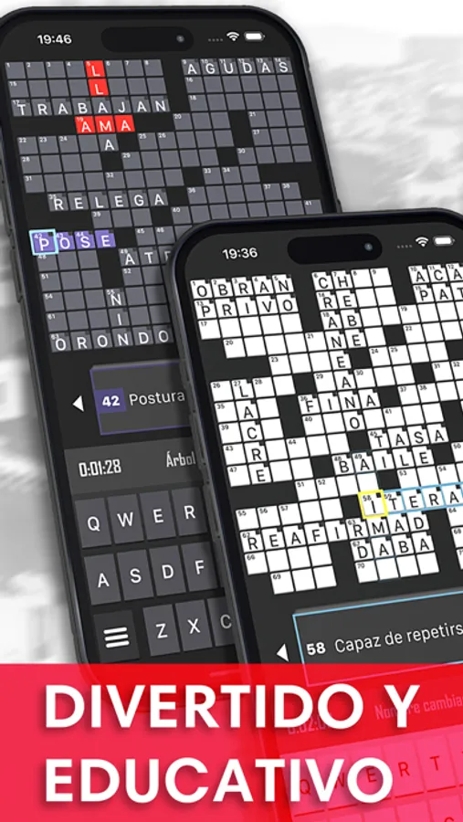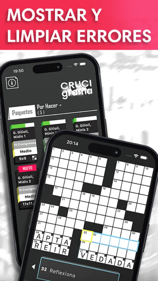 - Ayuda: revela letras, palabras o toda la cuadrícula si te quedes atascado.