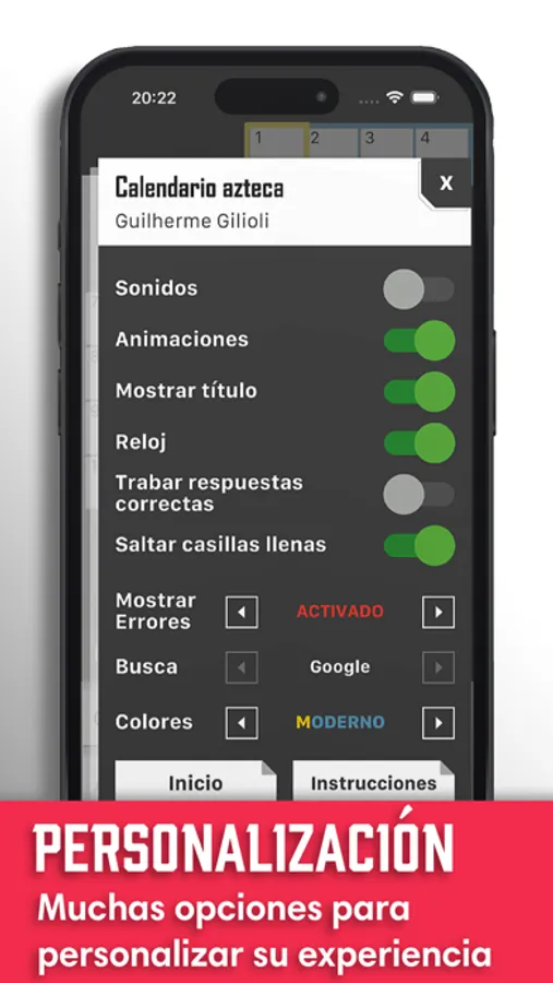 - Asistencia Para Crucigramas Incorrectos: te recuerda cuando el crucigrama está lleno pero tiene casillas incorrectas.