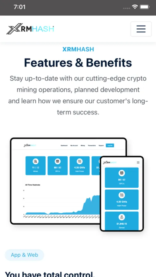 The smartest & safest approach to Crypto Mining, The convenience and flexibility of cloud computing with the upside of asset ownership. State-of-the-art fully managed crypto mining equipment with long-term profitability.