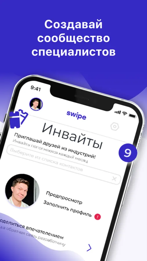 "А если у меня не креативная профессия, мне не попасть в Swipe?" – наше сообщество радо всем людям, стремящихся к творчеству. Открывайте в себе новые способности, выбирайте креативную индустрию, которая вам нравится, развивайтесь, а наше приложение поможет найти людей разделяющих ваши интересы.