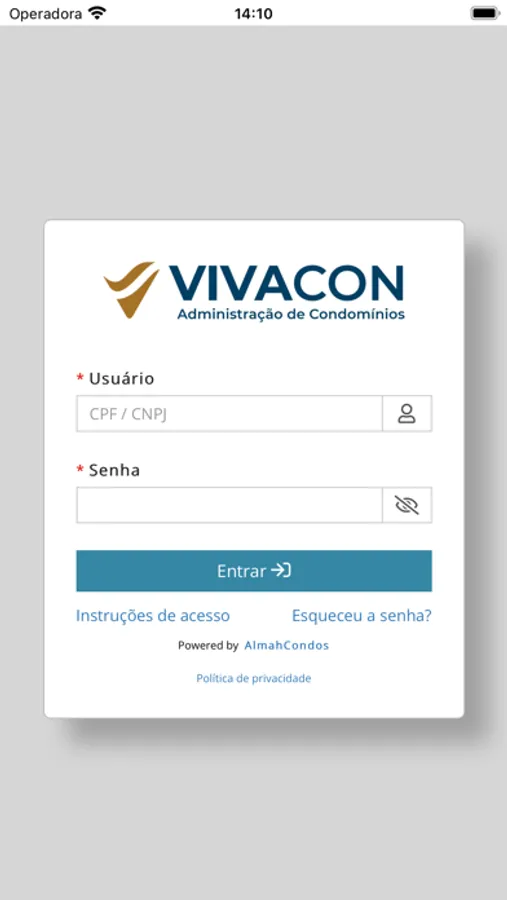 Este aplicativo é exclusivo para usuários da Vivacon Administradora.
